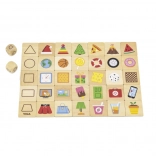 Lesena izobraževalna sestavljanka VIGA je igrača, osredotočena na razvoj kognitivnih in motoričnih sposobnosti otrok. Kakovostna sestavljanka je izdelana iz naravnega lesa in barvana z nestrupenimi barvami, kar zagotavlja varnost za vašega otroka. Komplet vsebuje različne oblike, ki jih otroci povezujejo z vsakodnevnimi predmeti, kot so cvetlični lonček (trapez) ali kos pice (trikotnik).