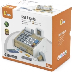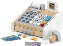 Blagajna ima realističen dizajn z zaslonom in izvlečno predalom, ki otrokom daje občutek prave uporabe blagajne.