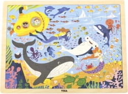Z lesenimi sestavljankami Morsko življenje boste odkrili osupljivo paleto morskih živali, kot so kiti in ribice, vse skupaj vključno z rumeno podmornico.