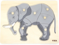 Ta lepa lesena vstavljanka z motivom slona je idealna za razvoj kognitivnih spretnosti in fine motorike vaših otrok. Vsi koščki so opremljeni z ročaji, ki otrokom omogočajo enostavno rokovanje.