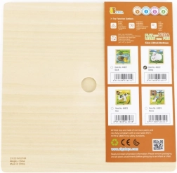 Veseli ovčki v živih barvah vabijo k sestavljanju in pripovedovanju zgodb. Okvir pomaga ohranjati sliko skupaj in olajša prve poskuse.