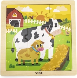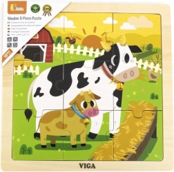 Lesene sestavljanke z 9 kosi s sliko kravic. Dimenzije lesene plošče približno 22 x 22 x 1 cm. Dimenzije embalaže približno 22 x 22 x 1 cm. Starost 18m+