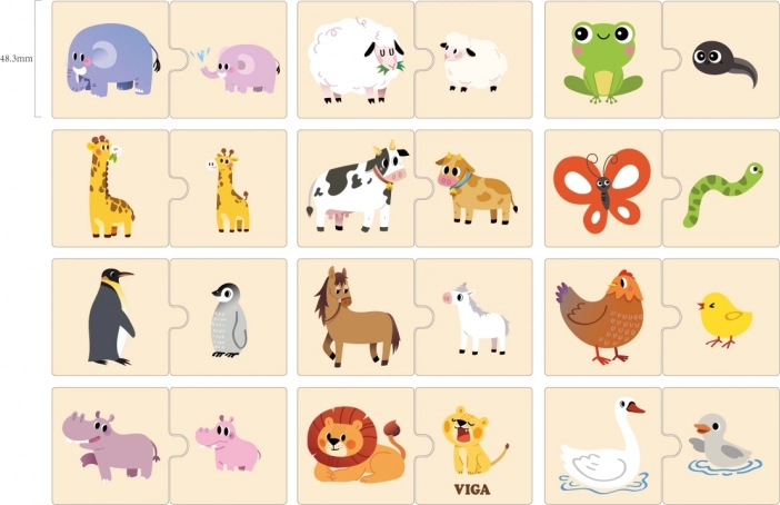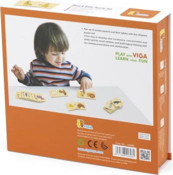 Odkrijte zabavne in poučne lesene sestavljanke, pri katerih otroci uparjajo starše in mladiče živali. Komplet znamke VIGA razvija fino motoriko, logično razmišljanje, koncentracijo in besedni zaklad zahvaljujoč preprostemu principu prirejanja. Idealno za otroke od 18 mesecev.