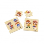 Ta kakovostna lesena izobraževalna igrača otroke uči pravilnega zaporedja oblačenja z zlaganjem zaporednih delov s podobami dečka in deklice. Vsak del ima edinstven motiv in natančno sodi skupaj, zato otroci med igro urijo razumevanje povezav in potrpežljivost.