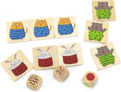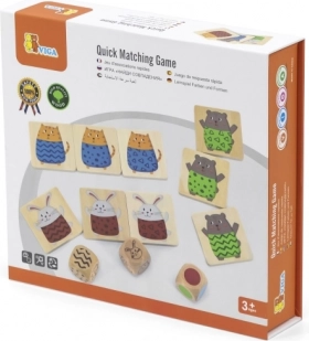 Lesena igra hitro ujemanje znamke VIGA je družabna igra za vso družino, ki uri opazovanje, logiko in spomin. Igralci mečejo 1–3 kocke in iščejo pravo žival s pripadajočim vzorcem na majici in barvo. Izdelano iz kakovostnega lesa in barvano z netoksičnimi barvami – varno za otroke.