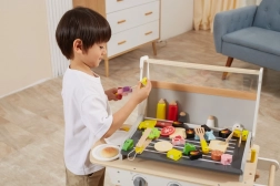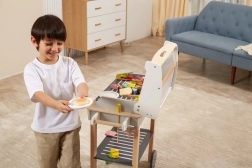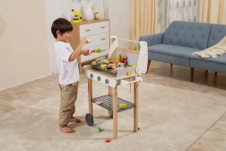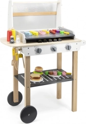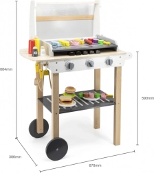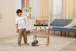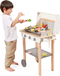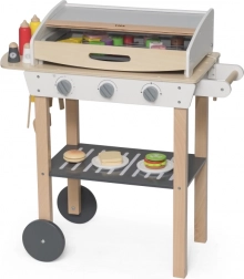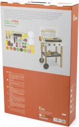 Otroški žar VIGA prinaša avtentično izkušnjo žarjenja v varni, kakovostni in stabilni leseni konstrukciji. Otroci lahko pripravljajo ražnjiče, burgerje, hrenovke ali sendviče ter strežejo »gostom« kot na pravi vrtni zabavi. Vrtljiva gumba s klikalnim učinkom, odstranljiv pokrov in izvlečni rešet podpirajo realistično igro in razvoj spretnosti.