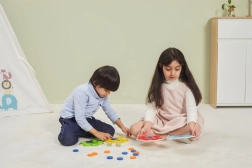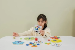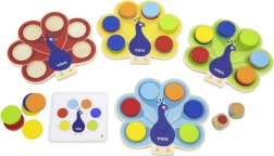 Otroci ujemajo žetone po kartah ali po metu kocke, naravno usvajajo barve ter vadijo pozornost in logiko.
