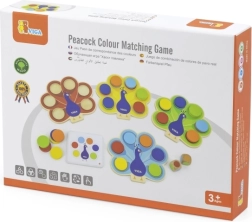 Odkrijte premišljeno zasnovano leseno igro, v kateri otroci sestavljajo barvit pavjev rep. Po dvostranskih kartah ali izidu meta kock vstavljajo žetone v pravilne odprtine ter tako na nevsiljiv način urijo logično mišljenje, pozornost in usklajenost gibov. Varna izdelava iz bukovega lesa in netoksične barve zagotavljajo brezskrbno zabavo.