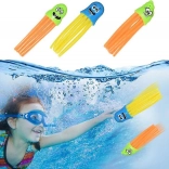 Zabaven set 6 barvitih hobotnic za otroke, ki po metu v vodo hitro potonejo na dno in spodbujajo trening potapljanja ter plavalne veščine. Idealne za bazen ali kopališče pod nadzorom odrasle osebe.