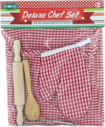 Komplet je zasnovan za udobno uporabo z otroškimi rokami ter spodbuja samostojnost, domišljijo in pozitiven odnos do hrane in kuhanja. Predpasnik in rokavička ščitita oblačila ter dodajata občutek pravega kuharja.