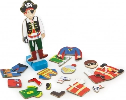 Ta magnetni oblačilni komplet otrokom prinaša neskončne možnosti kombiniranja pričesk, pokrival in oblačil. Magnetna figurica dečka stoji na stabilni osnovi, zato je rokovanje udobno, preoblačenje pa intuitivno in zabavno.