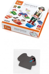 Magnetna figurica stoji trdno na podstavku, kar olajša preoblačenje in samostojno igro tudi mlajšim otrokom.