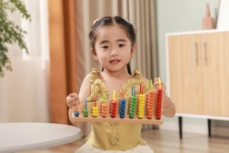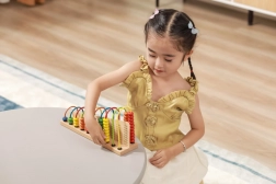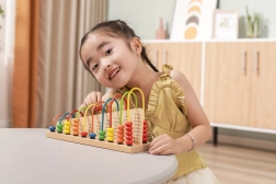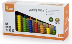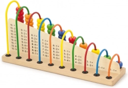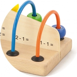 Ta kompaktni leseni pripomoček za računanje otrokom prinaša veselje do odkrivanja števil in preprostih matematičnih operacij. Na leseni ploščici so navedene naloge, otrok pa na kovinskih lokih dodeli pravo število kroglic. Zaradi intuitivnega principa se otroci naravno učijo prepoznavati številke, šteti in razumeti odnos med nalogo in rezultatom.