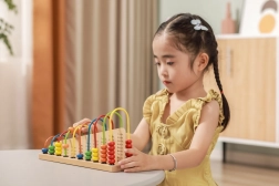 Na podstavku so natisnjene preproste naloge. Otrok premika kroglice in dodeli pravo število – nazorno in zabavno utrjevanje seštevanja in odštevanja.