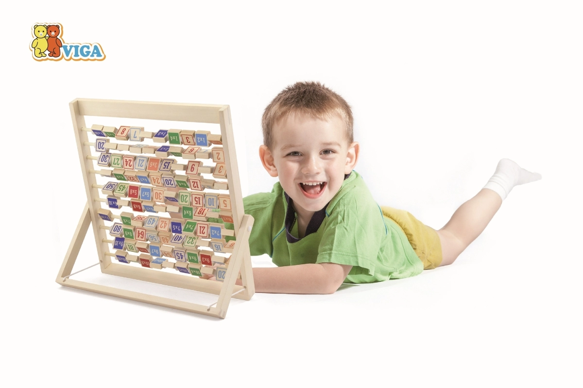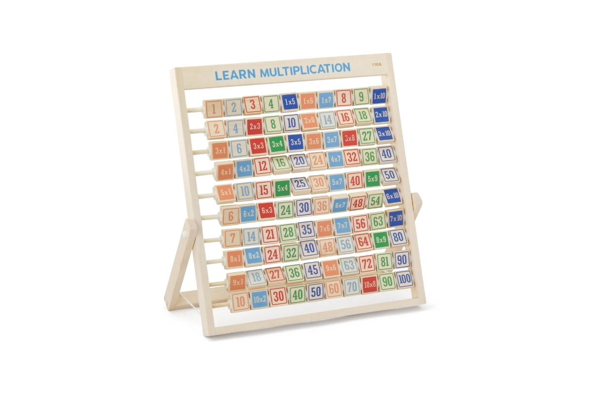 Ta kakovostna lesena tabla za poštevanko razvija logično mišljenje, koncentracijo in fino motoriko. Zaradi pregledne razporeditve in barvnih kock otroci hitro razumejo principe množenja, rezultate pa lahko kadar koli preverijo z obratom kocke.