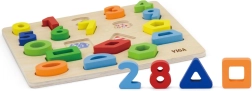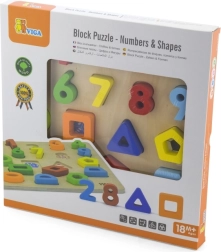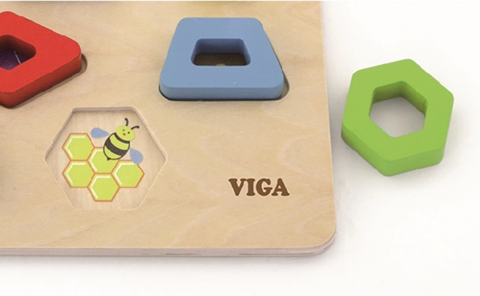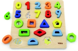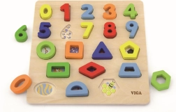 Lesena vstavljanka VIGA – številke in liki je odličen način, kako otroke seznaniti s prvimi številkami in osnovnimi geometrijskimi liki. Zaradi živih barv in trdne lesene izdelave si otroci vadijo koordinacijo oko–roka, razlikovanje likov in barv ter logično razmišljanje. Vsak košček ima svoje mesto, kar spodbuja potrpežljivost in zbranost.