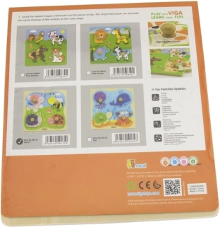 Vsak košček ima masiven lesen gumb, ki otrokom omogoča, da sličico zlahka primejo in natančno postavijo na svoje mesto.