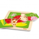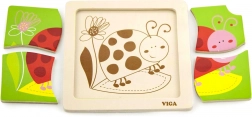 Ta preprosta lesena sestavljanka s pikapolonico je odlična prva sestavljanka za malčke. Zahvaljujoč trdnim, gladkim delom jo je prijetno držati in jih enostavno vstaviti v okvir. Motiv v živih barvah spodbuja igro in krepi zbranost.