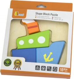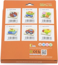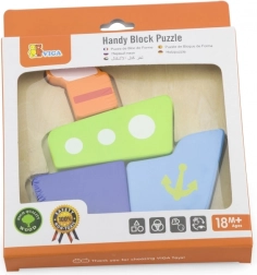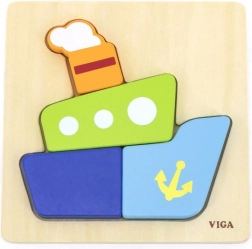 Lesena mini sestavljanka Viga je idealna prva sestavljanka za malčke in predšolske otroke. Štirje barvni koščki natančno zapolnijo izrezano obliko v podlagi in po sestavljanju ustvarijo vesel motiv ladje. Preproste oblike in žive barve motivirajo otroke k ponovnemu sestavljanju ter spodbujajo njihovo naravno radovednost.