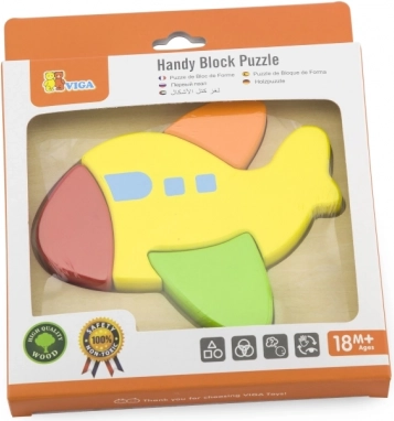 Odkrijte prve sestavljanke za najmlajše: lesene mini sestavljanke Viga z motivom letala. Set vsebuje 4 masivne koščke, ki jih je enostavno prijeti in vstaviti v oblikovano leseno podlago. Igrača spodbuja fino motoriko, prepoznavanje oblik in logično razmišljanje ter je izdelana iz varnih, nestrupenih materialov brez ostrih robov.