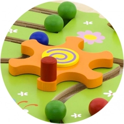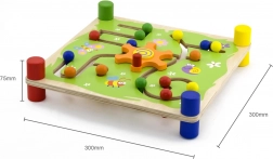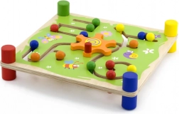 Igra pomaga otrokom izboljšati fino motoriko rok in koordinacijo oči pri umeščanju pisanih kljukic na desko.