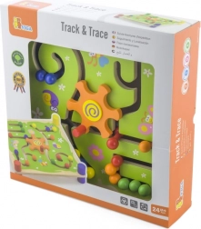 Igra Tapkaj in Sledi je zasnovana tako, da razvija fino motoriko in koordinacijo rok in oči. Otroci so motivirani, da umeščajo kljukice na pravilna mesta na deski, po šestih priloženih vzorčnih karticah.