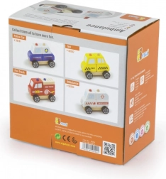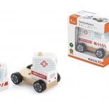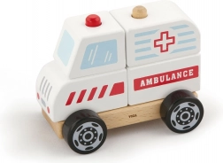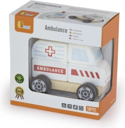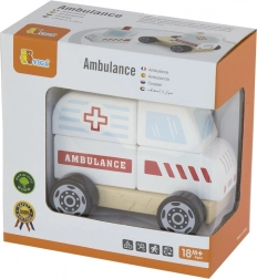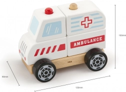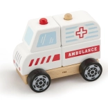 To leseno reševalno vozilo je odlična kombinacija sestavljanke in vozila na kolescih. Otroci lahko posamezne dele sestavijo v reševalno vozilo in nato uživajo v vožnji zahvaljujoč gladko vrtečim se kolescem. Robustni les, kakovostne barve in zaobljeni robovi zagotavljajo varno igro in dolgo življenjsko dobo.