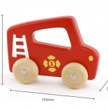 Odkrijte svet pravljičnih dogodivščin s tem osupljivim leseni gasilskim avtom velikosti približno 15,5 x 11,5 x 5 cm. S svojimi naravnimi lesenimi kolesi in rdečim premazom je idealen dodatek za domišljijsko igro. Pripravite se na reševalne misije!