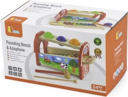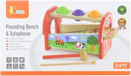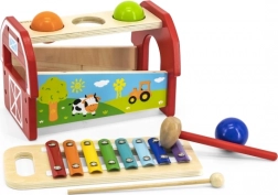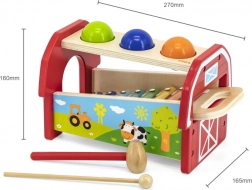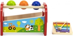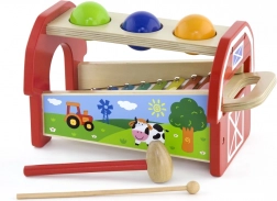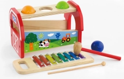 Ta lesena igra s kladivcem in ksilofonom združuje aktivno igro z odkrivanjem glasbe. Otroci kroglice zabijajo skozi odprtine, spremljajo njihov gib in nato na barvnih lamelah ksilofona iztapkajo preproste melodije. Tako na nevsiljiv način vadijo natančnost, ritem in potrpežljivost.