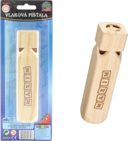 Lesena vlakovna piščalka Maxim je odličen spremljevalec za vse ljubitelje vlakcev. Dovolj je pihniti in zasliši se avtentičen zvok parne piščalke, ki vsaki igri doda pravo vzdušje prave železnice.