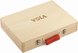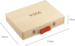 Trden leseni kovček s kovinskimi zaponkami in rdečim ročajem vse drži na svojem mestu, zato se noben kos ne izgubi. Zaradi pregledne razporeditve ima vsak pripomoček svoje mesto, celoten komplet pa je enostavno prenosljiv na obiske, potovanja in v otroško sobo.