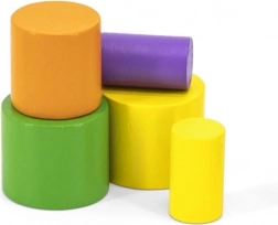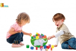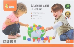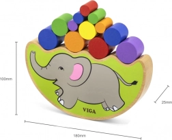 Ukrožena slonova podlaga in različne velikosti valjčkov učijo otroke občutljivega uravnoteženja in natančnega polaganja delov.