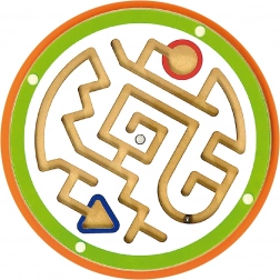Labirint s kroglico in vijaki z navojem urijo natančnost prstov, prijem in koordinacijo oko–roka. Otroci premikajo kroglico ter vadijo potrpežljivost in zbranost.