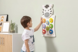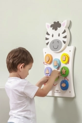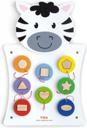 Odkrijte čar lesene stenske table Zebra podjetja VIGA, ki razvija ne le ustvarjalno razmišljanje in spretnost, temveč tudi sposobnost prepoznavanja oblik in barv. Ta igra je primerna za malčke, ki skozi igro razvijajo svoje senzorične veščine.