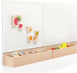 Zahvaljujoč magnetni izvedbi kosov se otroci lahko enostavno igrajo na kovinskih površinah, kar razvija njihovo koordinacijo in ustvarjalnost.