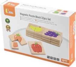Set vsebuje skupno 32 magnetnih kosov, ki so lahko oprijemljivi in enostavni za manipulacijo. Ilustracije sadnih motivov so živahne in spodbujajo otroško domišljijo.