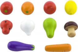 Ta komplet lesenega sadja in zelenjave je popolna igrača za male kuharje in kuharice. Vsako sadje in zelenjava je skrbno izdelana iz kakovostnega lesa in pobarvana z varnimi barvami, ki so primerne tudi za male otroke.