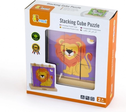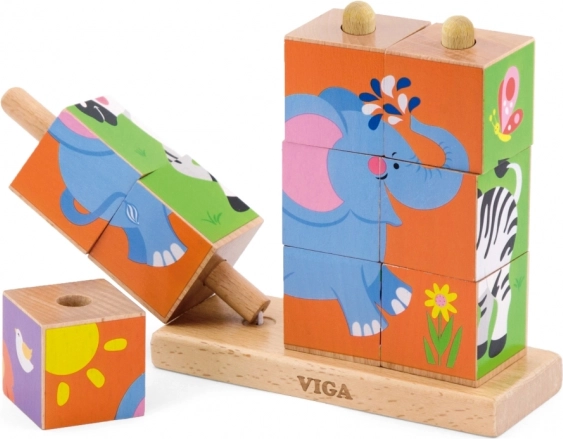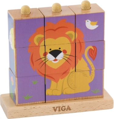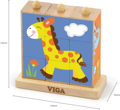 Lesene natikajoče kocke Viga Safari so brezčasna igrača, ki otroke naravno vodi k učenju skozi igro. Devet gladko obdelanih kock na stabilni osnovi omogoča sestavljanje štirih barvitih motivov živalic. Zahvaljujoč nagibnim količkom se kocke zlahka vrtijo, zato otroci hitreje najdejo pravi del.