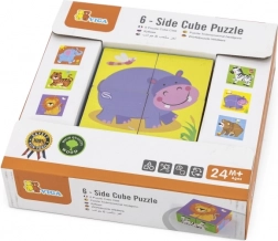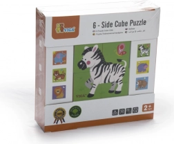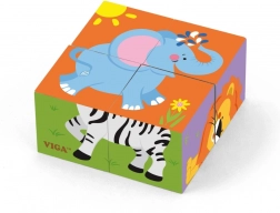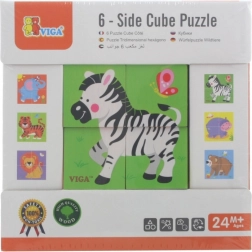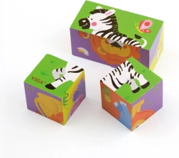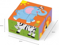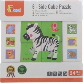 Lesena sestavljanka VIGA Zoo je idealna prva sestavljanka za otroke od 2 let. Štiri robustne kocke skupaj tvorijo šest veselih ilustracij živali, ki vabijo k raziskovanju in razvijajo domišljijo. Igra je intuitivna, zabavna in odlično uri zbranost ter potrpežljivost.