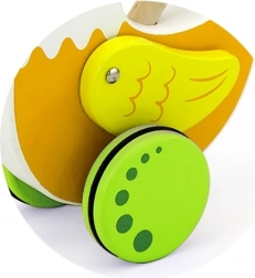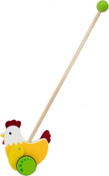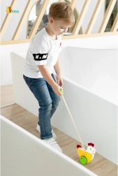 Ta potiskač s kokoško podpira otroke pri razvoju njihove hoje in koordinacije.