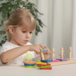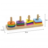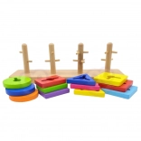 Sestavljanje različnih oblik na lesene zatiče spodbuja razvoj fine motorike ter koordinacijo roke in očesa.