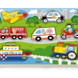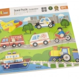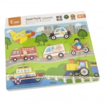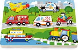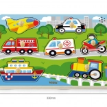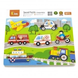 Sestavljanka vsebuje naslednja prevozna sredstva: letalo, avto, reševalno vozilo, ladja, gasilski tovornjak, motocikel in helikopter. Pri igri se hitro izboljšujeta otrokov opazovanje in spomin. Priporočeno za otroke od 18 mesecev.