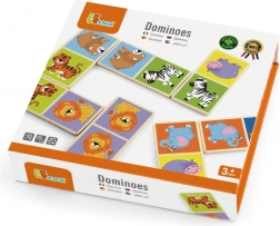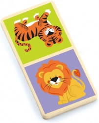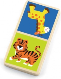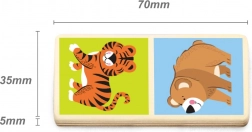 Odkrijte barviti svet živali z lesenimi dominami, zasnovanimi tako, da združujejo zabavo in učenje v enem. Vsak košček domine ima na eni strani čudovito ilustracijo različnih divjih živali, kar otrokom pomaga pri spoznavanju sveta okoli nas.