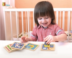 Lesene puzzle kravička znamke Viga ponujajo malčkom odličen način za učenje prepoznavanja oblik in razvoj fine motorike. Set vsebuje 4 koščke sestavljanke ter podobo, ki pomaga otroku pri sestavljanju delov. Puzzle so skrbno izdelane iz varnih lesenih materialov in pobarvane z živimi, nestrupenimi barvami. Vsaka igra s temi puzzlami bo za vašega malčka polna veselja in napredka.