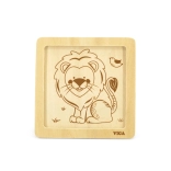 Ta kakovostna lesena sestavljanka z veselo podobo leva je zasnovana za majhne rokice. Zahvaljujoč štirim robustnim delom z gladkimi robovi se otroci zlahka učijo prepoznavati oblike ter urijo potrpežljivost in zbranost. Praktična lesena osnova drži dele na mestu in olajša sestavljanje.