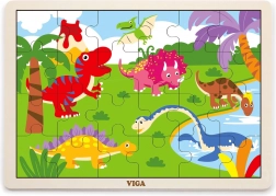 Lesene sestavljanke s prikupnim motivom dinozavrov bodo razveselile vse male ljubitelje prazgodovine. Zaradi 24 kosov so odlična izbira za prvo samostojno sestavljanje ter za razvoj koordinacije oko–roka in potrpežljivosti. Kakovostna izdelava in gladki robovi zagotavljajo varno in prijetno igro.
