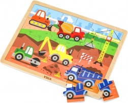 Lesene puzzle z gradbeno tematiko navdušijo z živahnimi barvami in robustno izdelavo, ki zdrži vsakodnevno igro. S 24 koščki so odlična izbira za prvo »večje« sestavljanje ter podpirajo koncentracijo in vizualno zaznavanje.