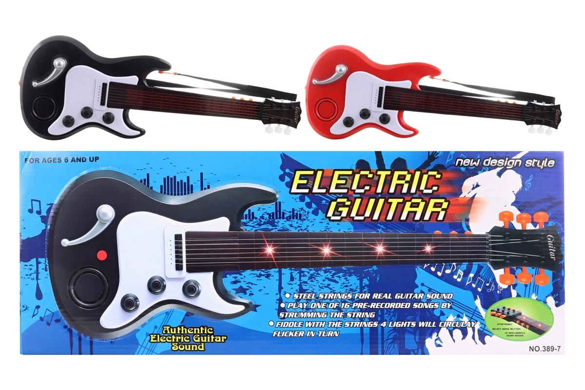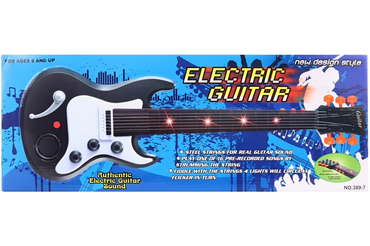 Ta elektronska otroška kitara je odlična izbira za prve glasbene korake. Zaradi kompaktne dolžine približno 55 cm dobro leži v majhnih rokah in spodbuja razvoj ritma, sluha ter ustvarjalnosti. Napajanje s 3× AA baterijami (niso priložene) omogoča igranje kadarkoli in kjerkoli, brez potrebe po priklopu na vtičnico.
