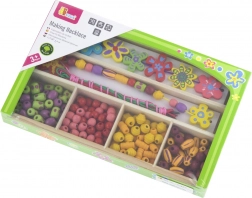 Mešanica lesenih perlic, okrasni elementi, vrvice za nizanje, organizator s predelki
