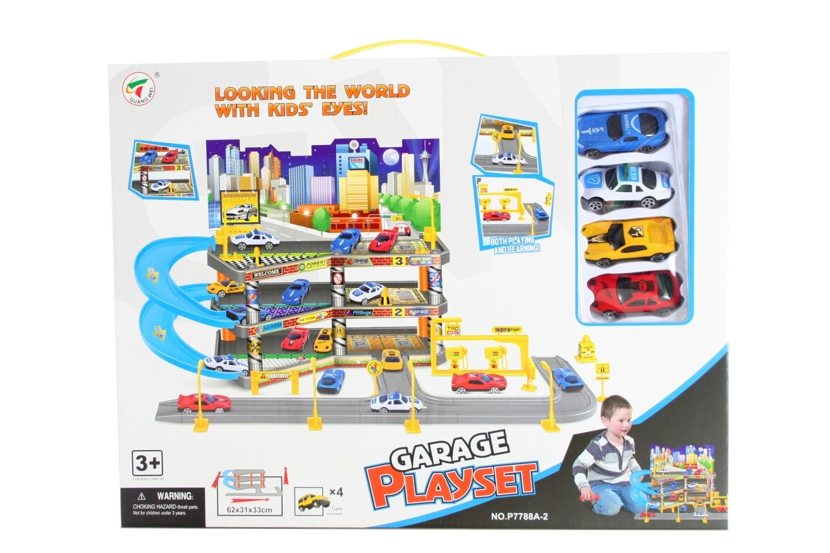 Ta troplastna garaža bo razveselila male ljubitelje avtomobilov. Zahvaljujoč stabilni konstrukciji in premišljeni razporeditvi nadstropij nudi dolge ure zabave ter razvija fino motoriko, domišljijo in koordinacijo. V paketu boste našli tudi 4 avtomobilčke, zato ni treba ničesar dodatno kupovati.